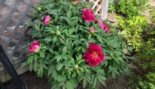 More backyard beauties. The latest addition to my dear wife Karen and I’s backyard blooming pageant are the huge and fragrant peony tree bursts. A half-dozen big flowers have added their gorgeous scent to the side corner, and more buds await.