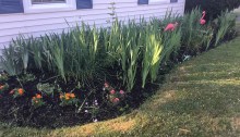 More well-meaning sprouts were spied on a walk around the Liverpool neighborhood of Galeville by cherished rescue mutt Ellie B aka Dogamous Pyle and I. The flowers are coming. The flowers are coming. Some of the interesting lawn ornaments seem to be popping as well. Yes, the blooms are beautifying the front of A Bitty…