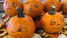 Hello, October! Come this time of year, my dear wife Karen and I head our car toward the intersections of Fulton and Oswego and the lovely goods put out by the folks at Ontario Orchards. I appreciate the iPhone photo opportunities of pumpkins and way more. Gourds of other colors. Yes, we’ll stretch it out…