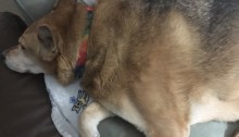 What are we going to do now, Da? Cherished rescue mutt Ellie B likes being retired, too. She’s got a couch, a chair, the floor, her crate, her dog bed, people’s beds, the backyard and me home to keep her company.