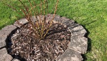 They’re not near the flower stage yet, but I am heartened by the greening state of our rose bush branches as mid-April nears. The big specimen up from looks great as it starts year two of its life in our yard.