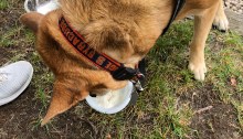 A reluctant dog accepts her ice cream