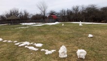 The kiddies built some stuff outside their playground across the street from A Bitty Better in our Liverpool neighborhood of Galeville. Ellie B aka Dogamous Pyle and I liked the way they stood up to the latest melt.
