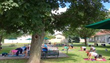 I take the five or so minutes to walk when I travel from the library to the site of our Tuesday morning Storytime in the Park. It would take me that long to drive and park, anyway, I figure. Plus this way, I get to take out my iPhone 6s to snap photos. The yoga…